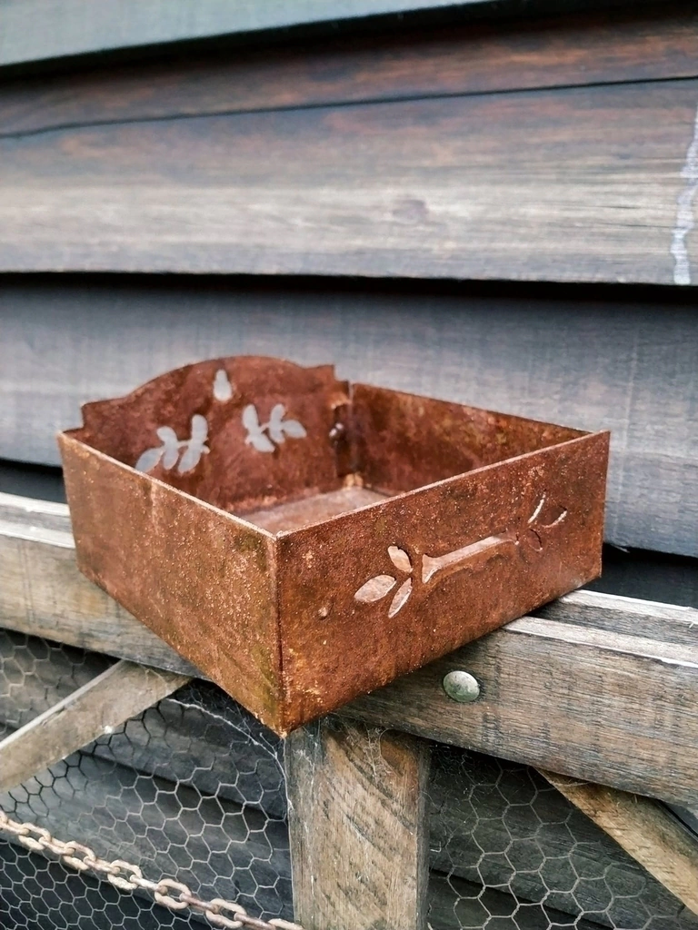 Medida: 15x15x8cm / Proceso de óxido natural que luego es barnizado.